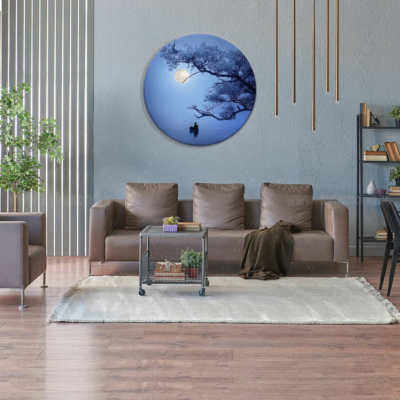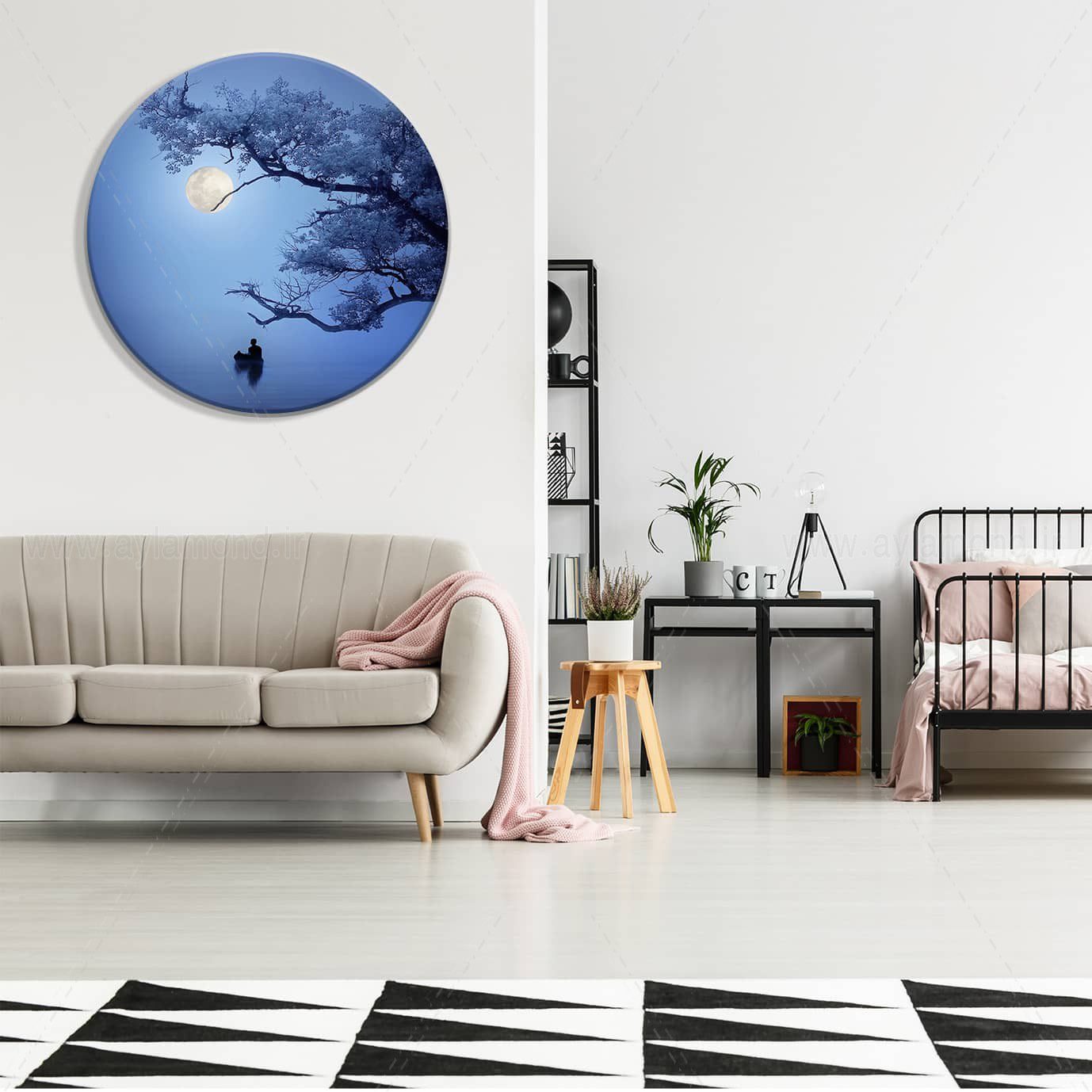 تابلو بوم طرح شب نشینی با ماه و دریا